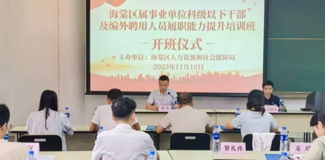 11月10日,海棠区属事业单位科级以下干部及编外聘用人员履职能力提升培训班(第一期)开班,旨在全面提升全区事业单位工作人员的政治素养、业务能力和服务水平,为推动社会事业高质量发展注入强劲动力。