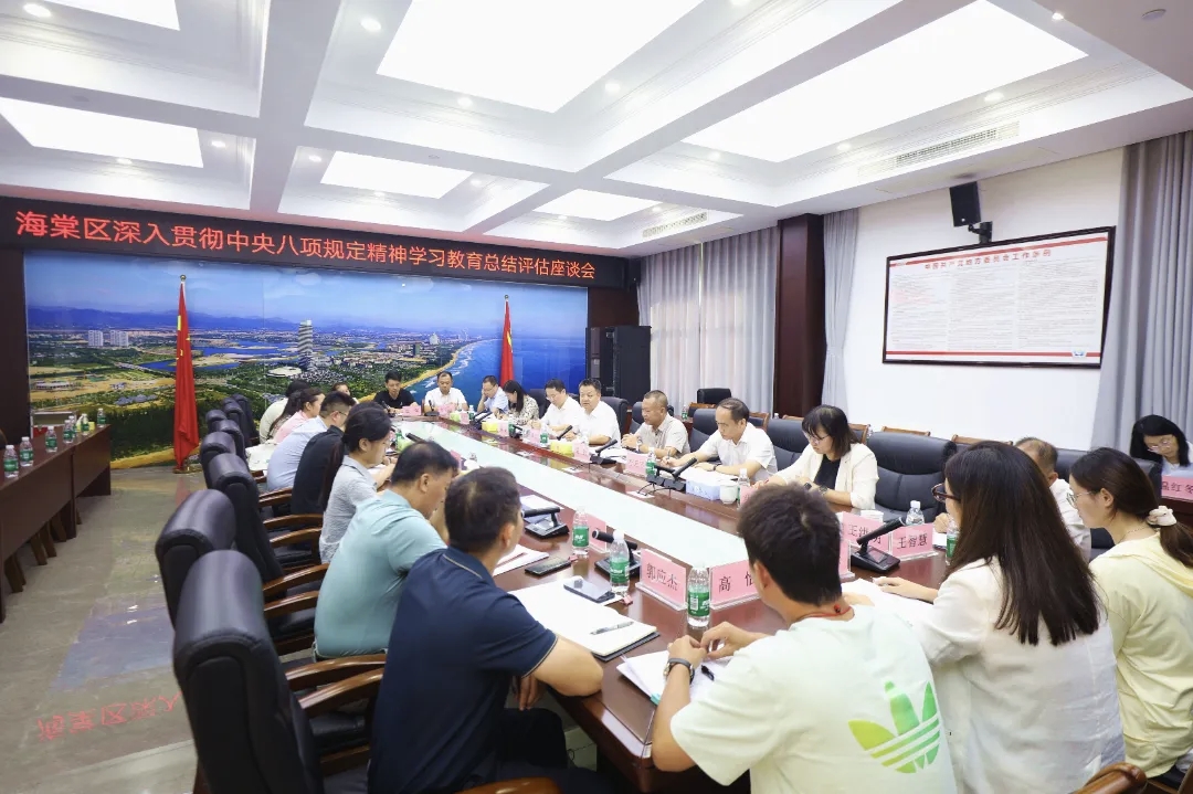 9月2日,海棠区深入贯彻中央八项规定精神学习教育总结评估座谈会召开,深入学习贯彻习近平总书记关于党的自我革命的重要思想、关于加强党的作风建设的重要论述和中央八项规定及其实施细则精神,进一步总结经验、查缺补漏、改进提高,抓紧抓细学习教育后续工作任务。